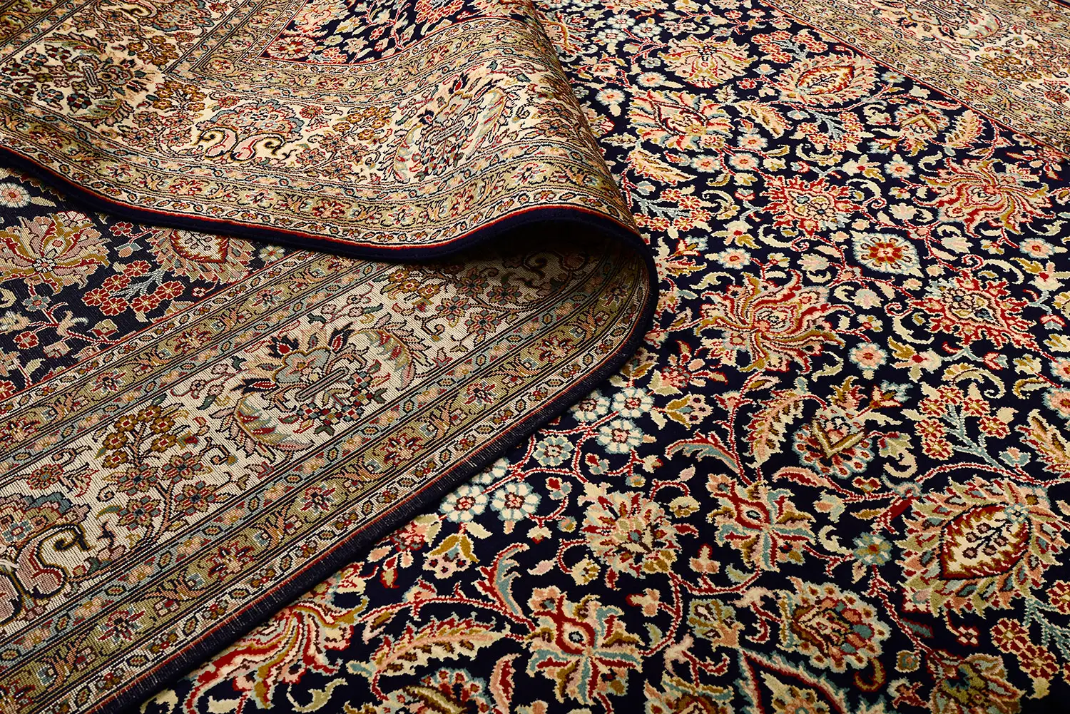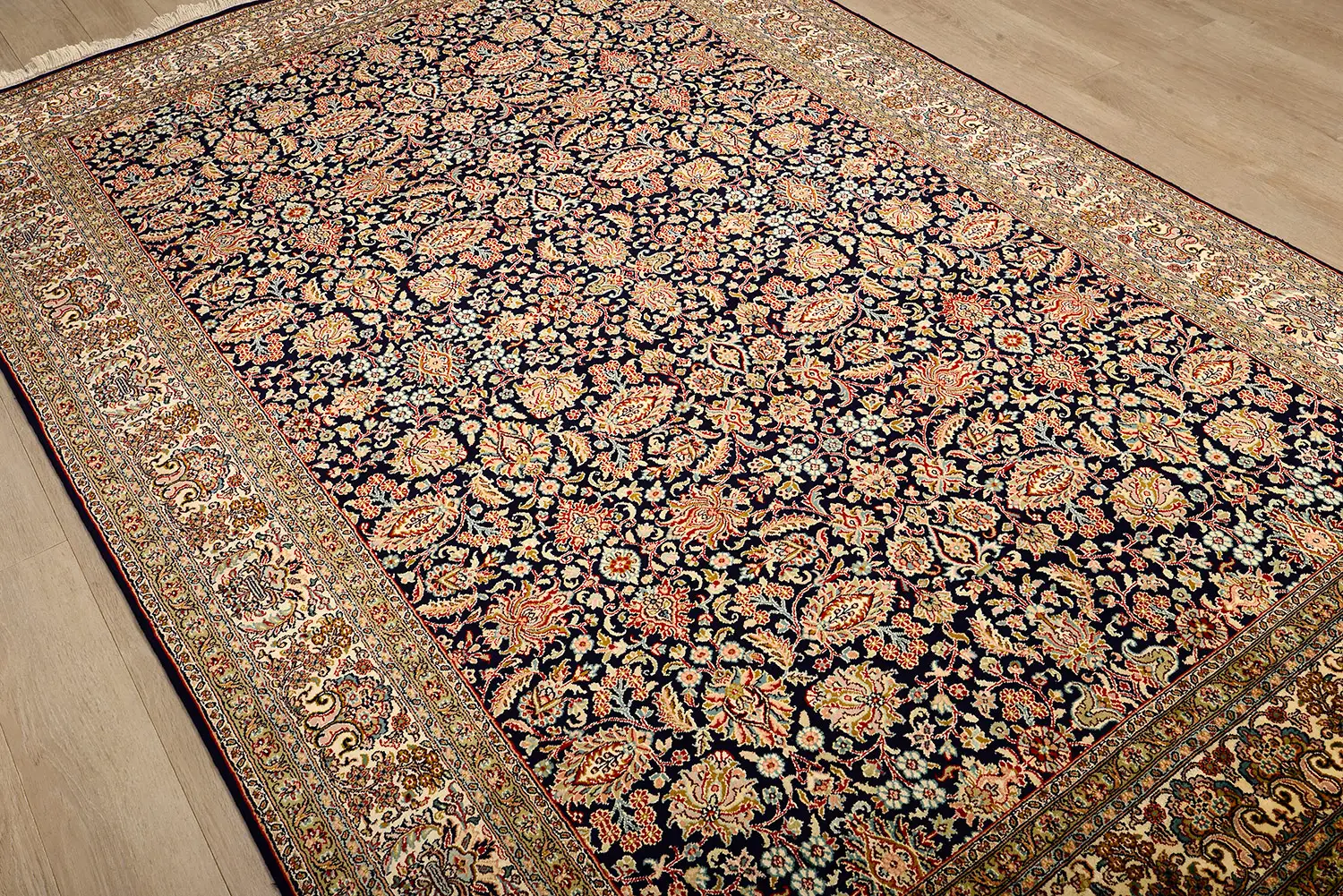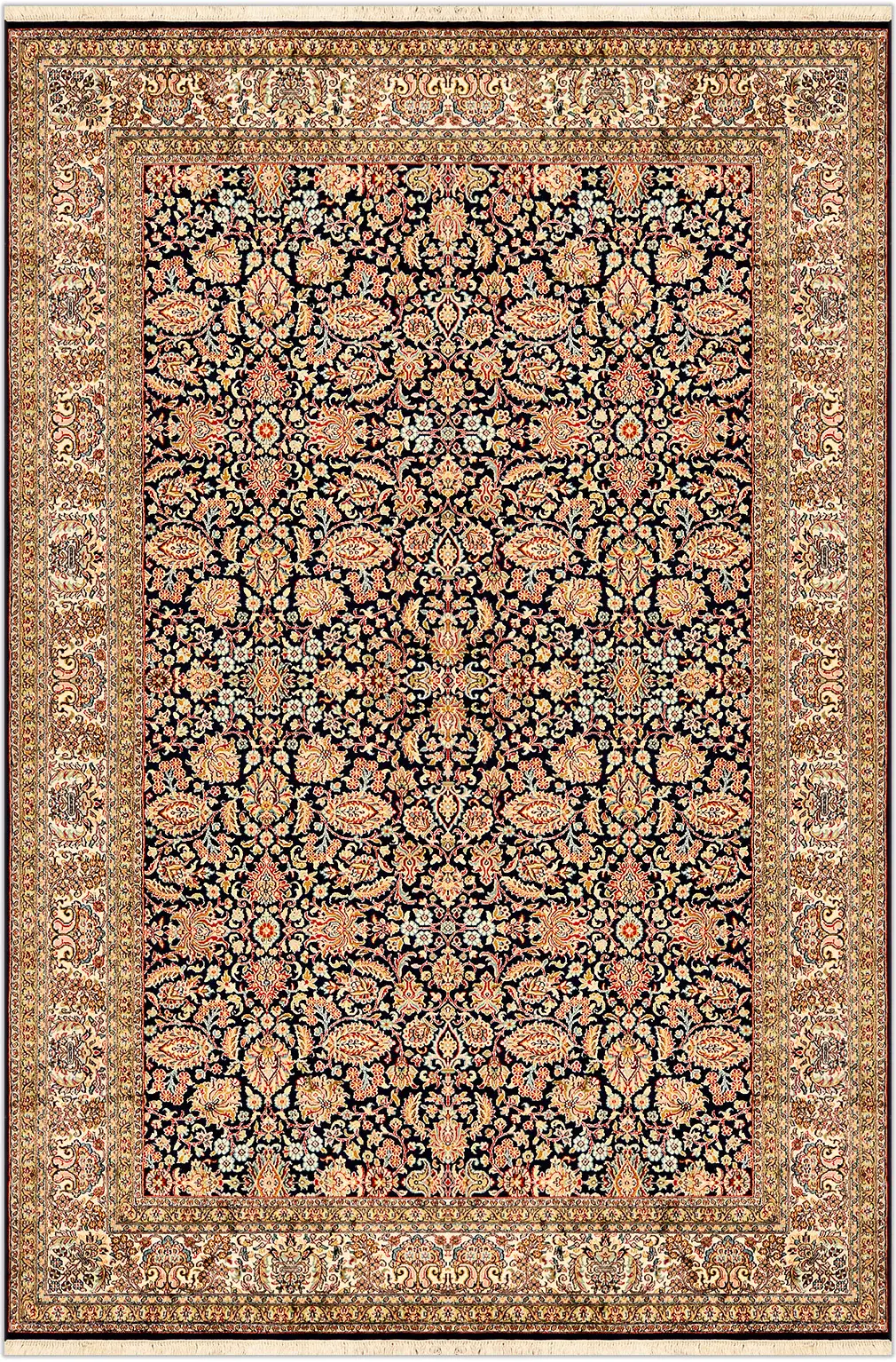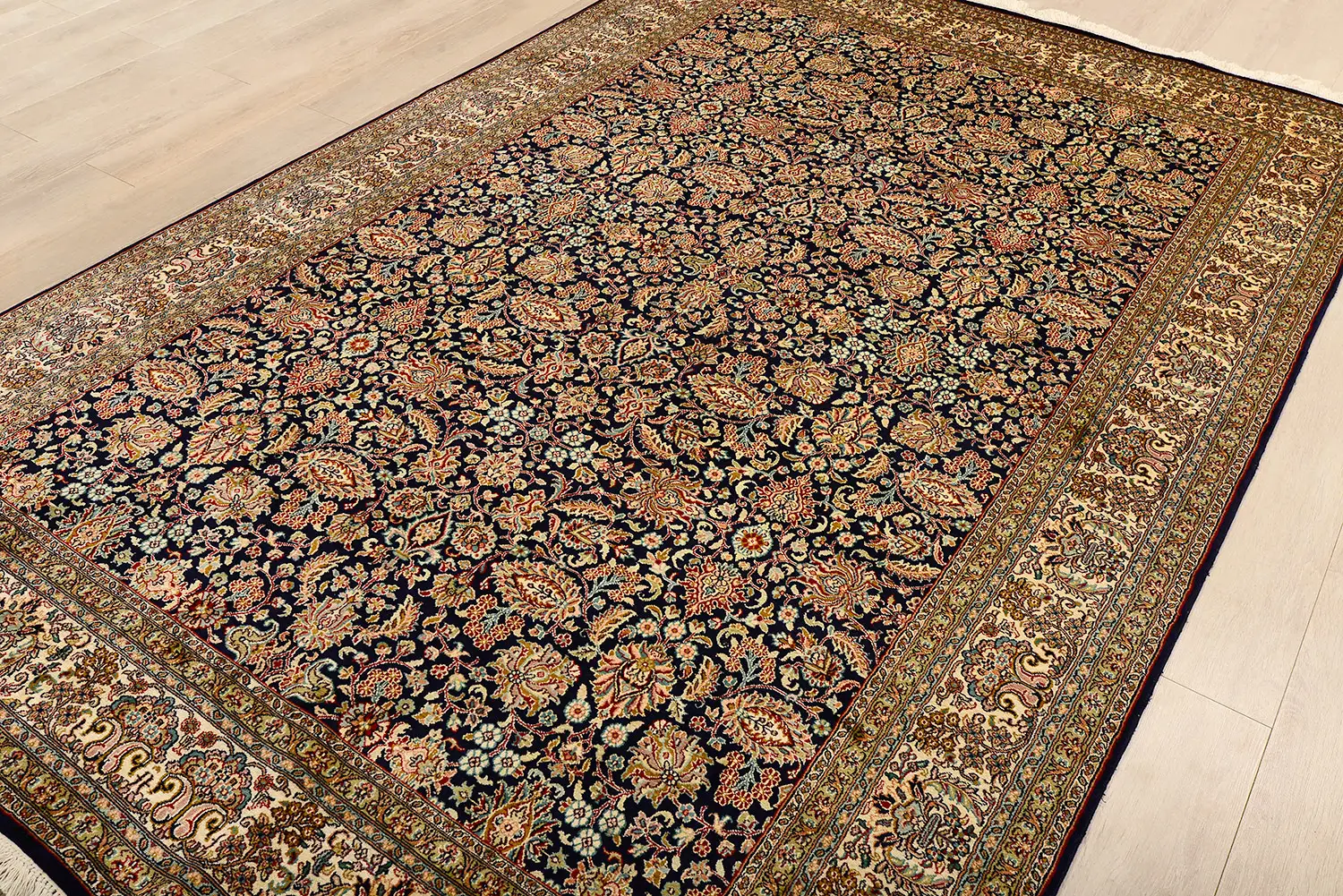 Современный Индийский ковер Rocaille №1670 274x183cm из шелка в стиле неоклассика -30%