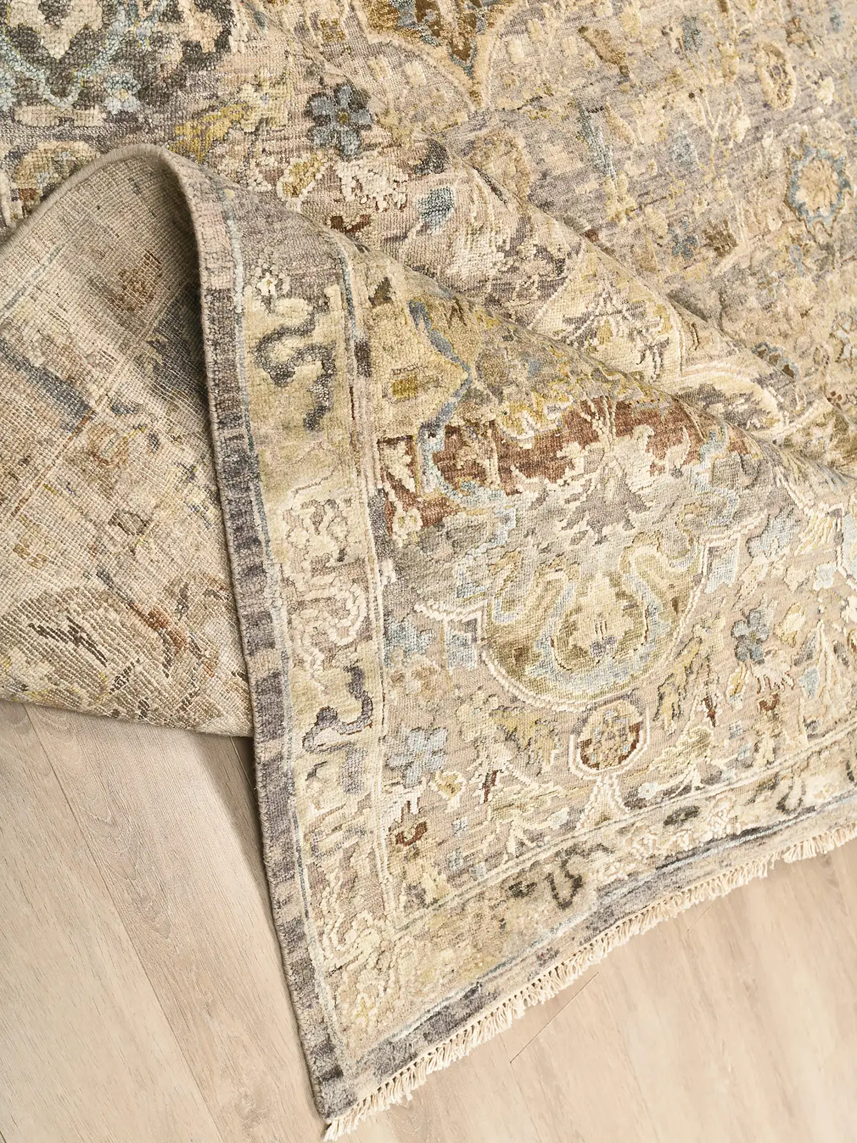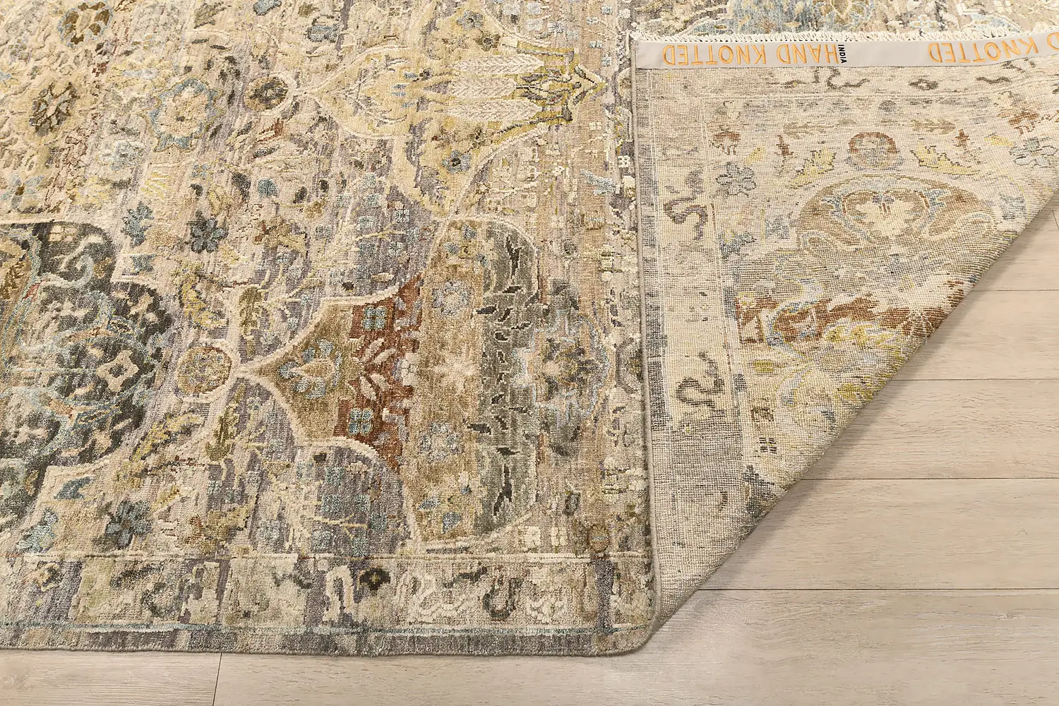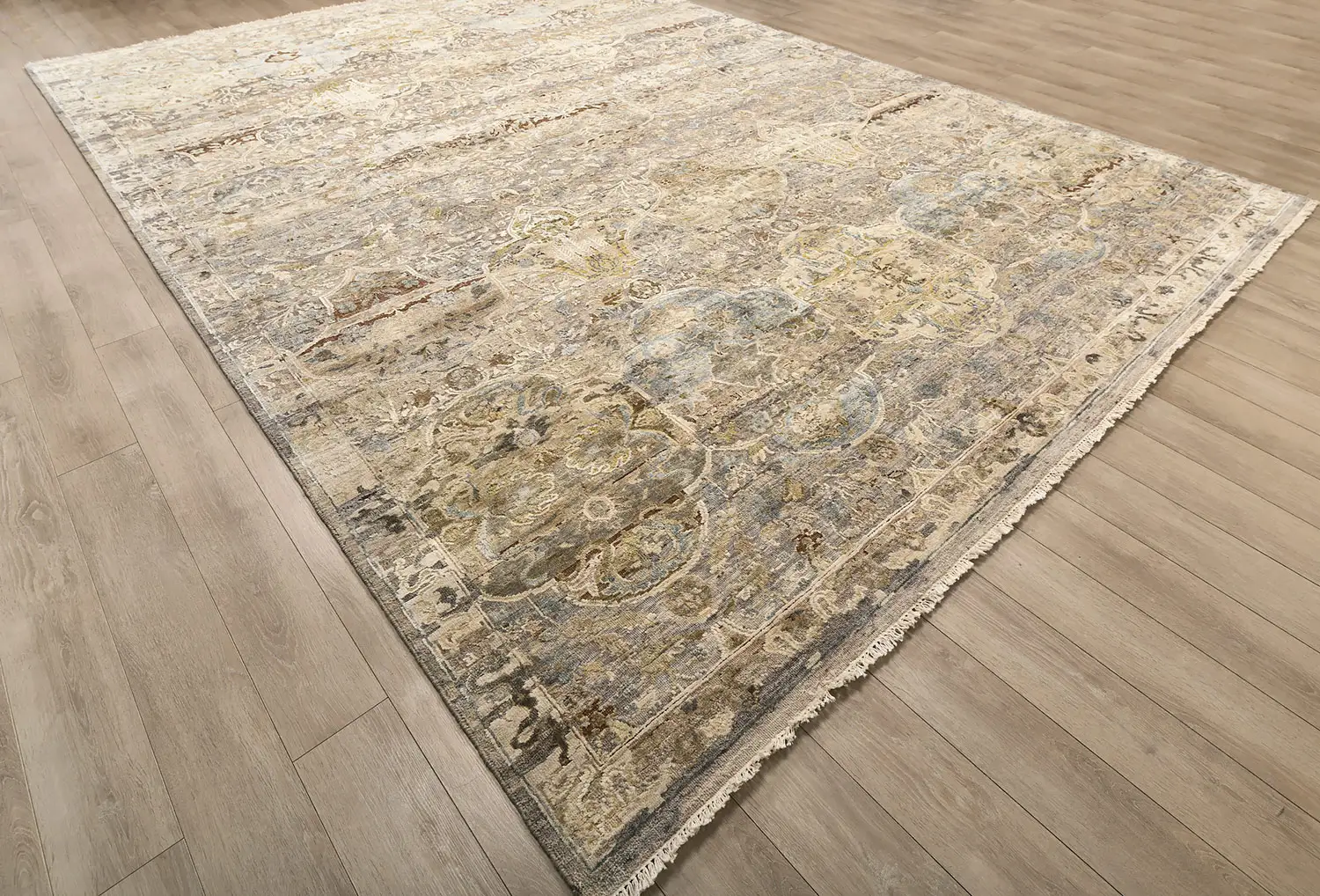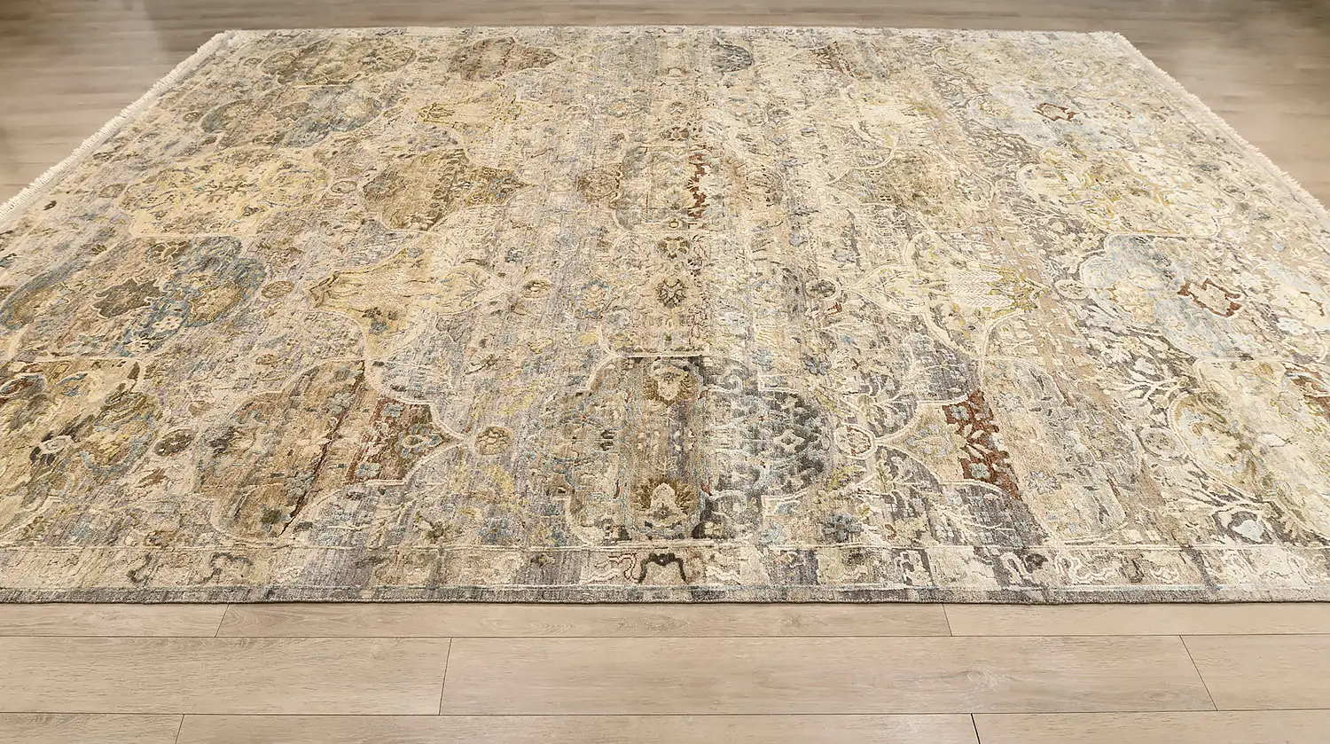 Современный Индийский ковер Baroque Frame №3385 424x307cm из шерсти и шелка в стиле неоклассика -35%