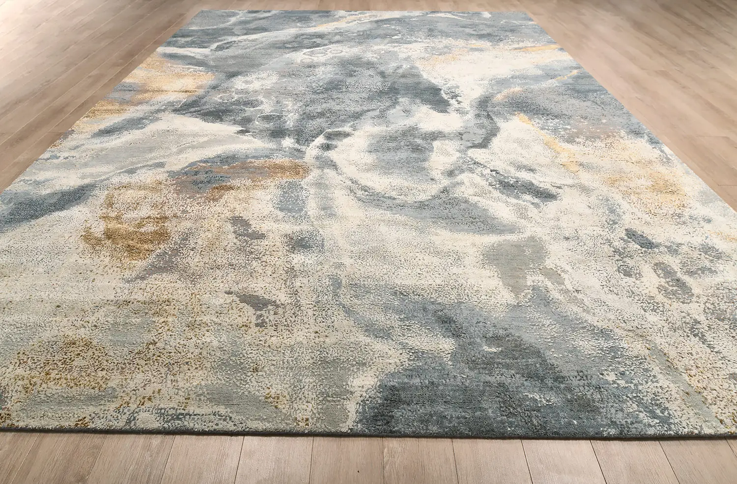 Современный Индийский ковер Kashkar №4267 370x279cm из шерсти и шелка в стиле неоклассика -30%