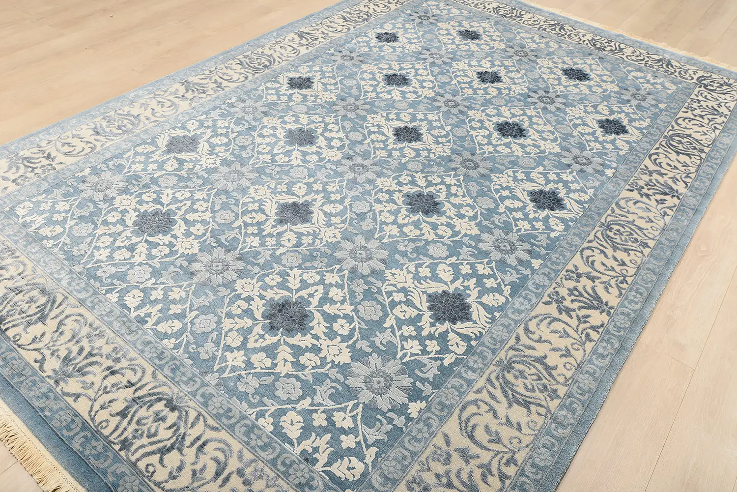 Современный Индийский ковер Damask №3526 294x198cm из шерсти и шелка в стиле неоклассика -50%