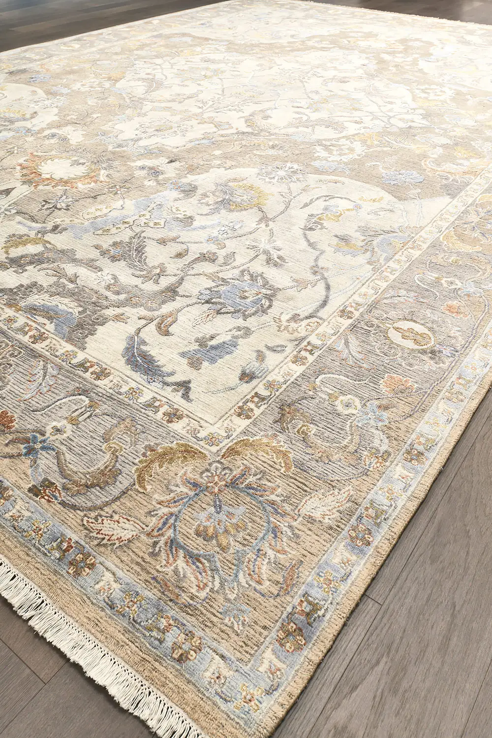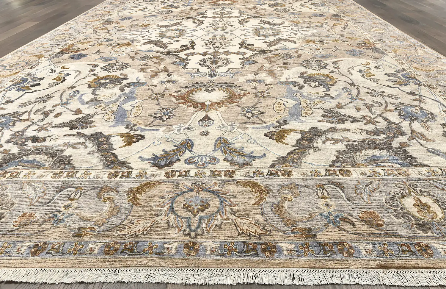 Современный Индийский ковер Baroque Frame №3385 424x307cm из шерсти и шелка в стиле неоклассика -35%