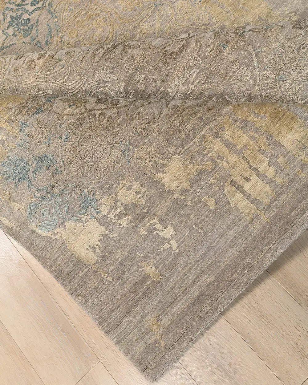 Современный Индийский ковер Shabby Classic №2226 305x247cm из шерсти и шелка в стиле неоклассика -30%