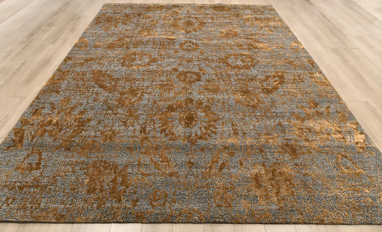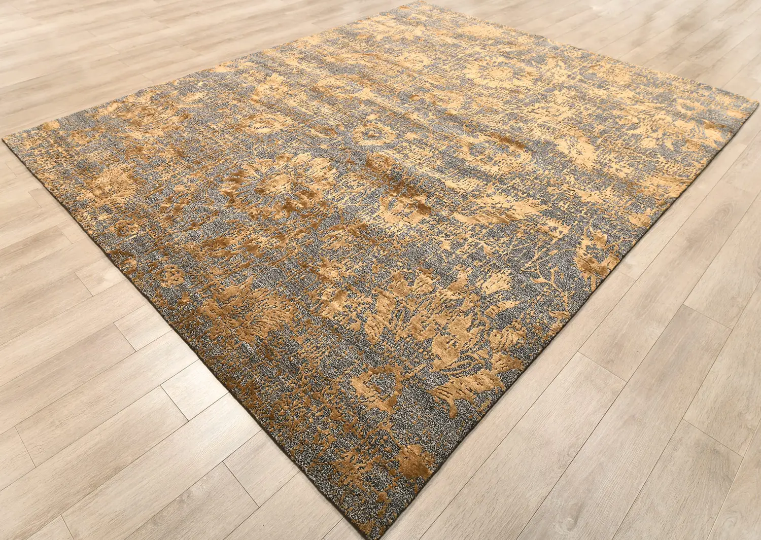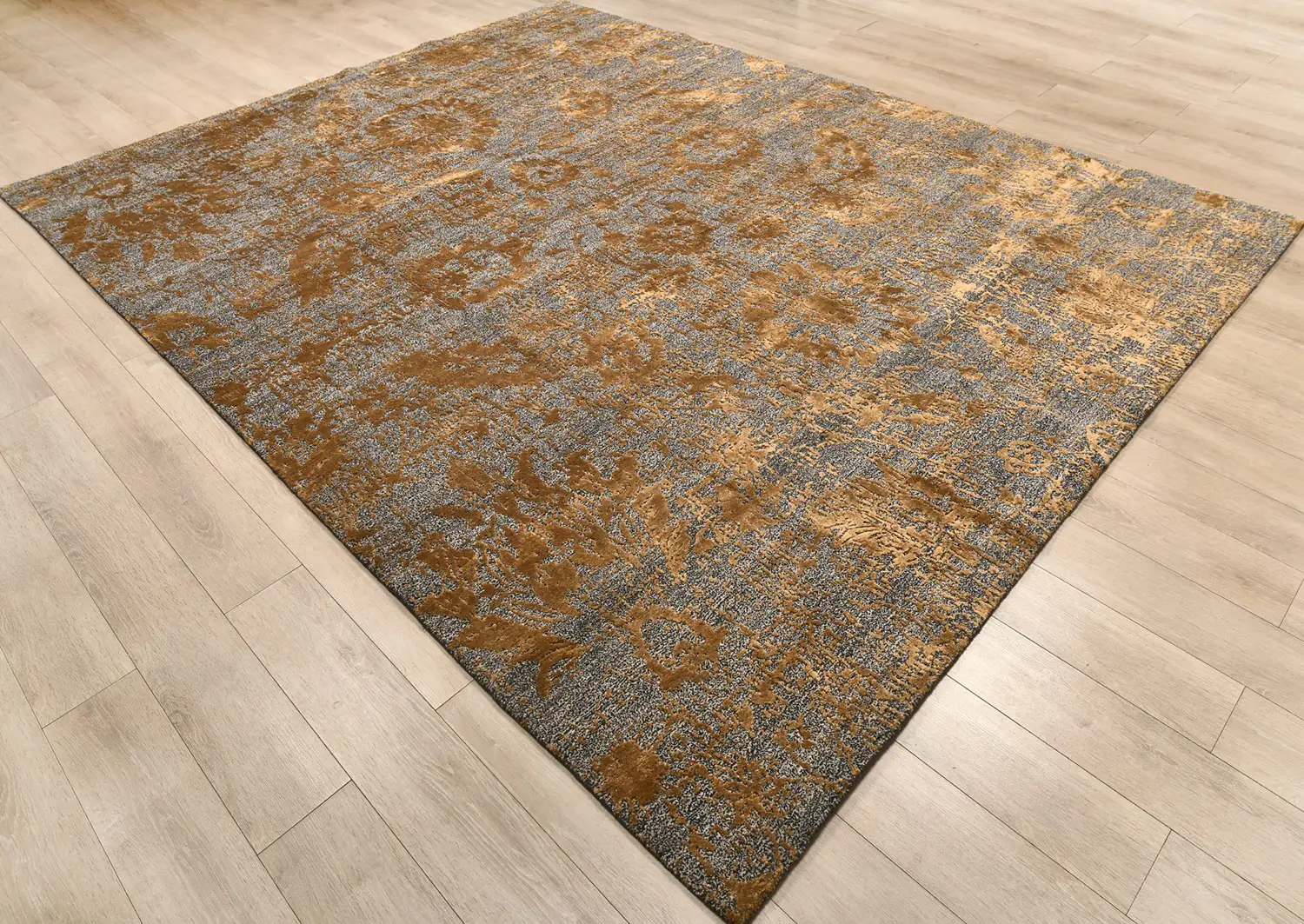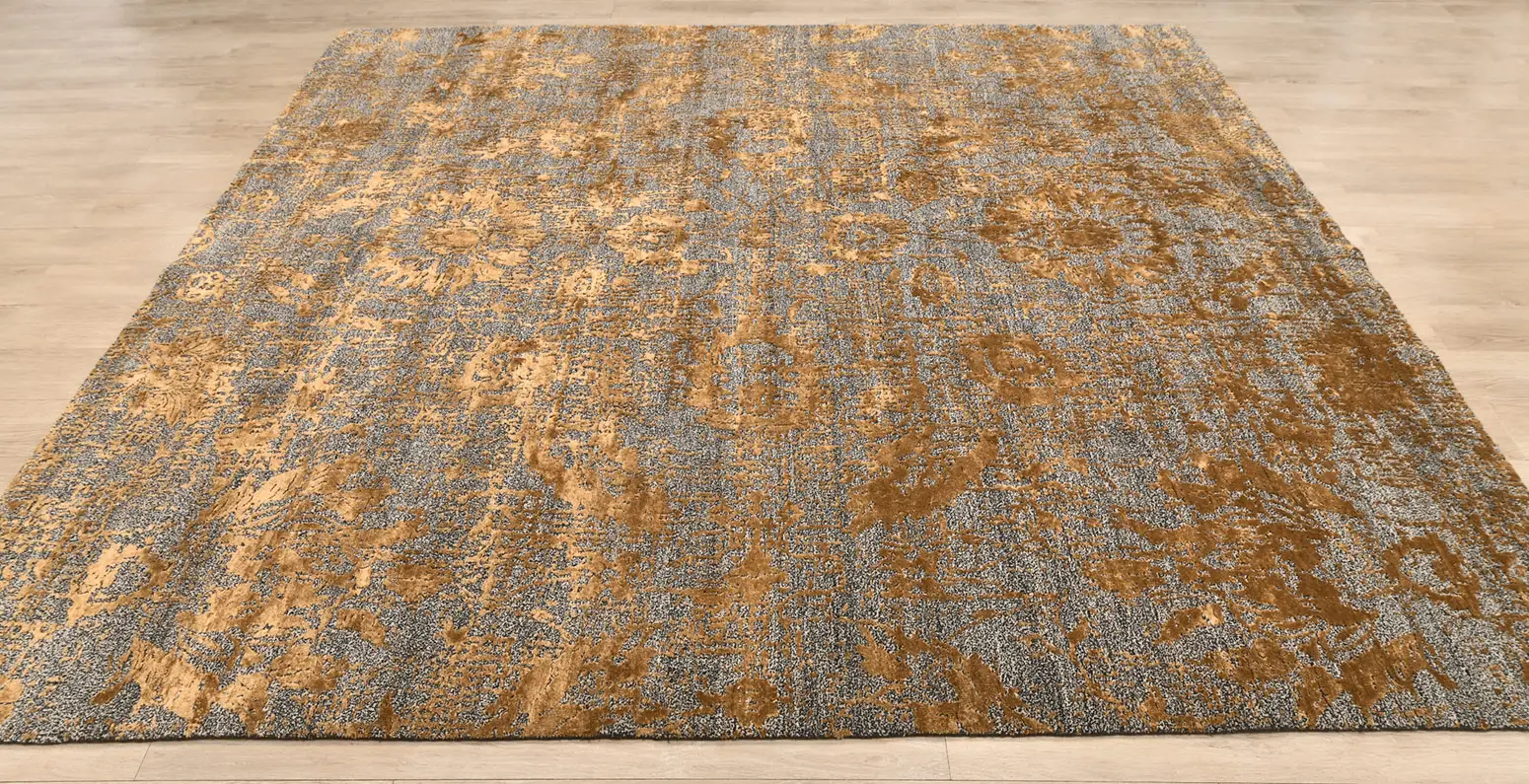 Современный Индийский ковер Damask №3444 304x243cm из шерсти и бамб. шелка в стиле неоклассика -40%