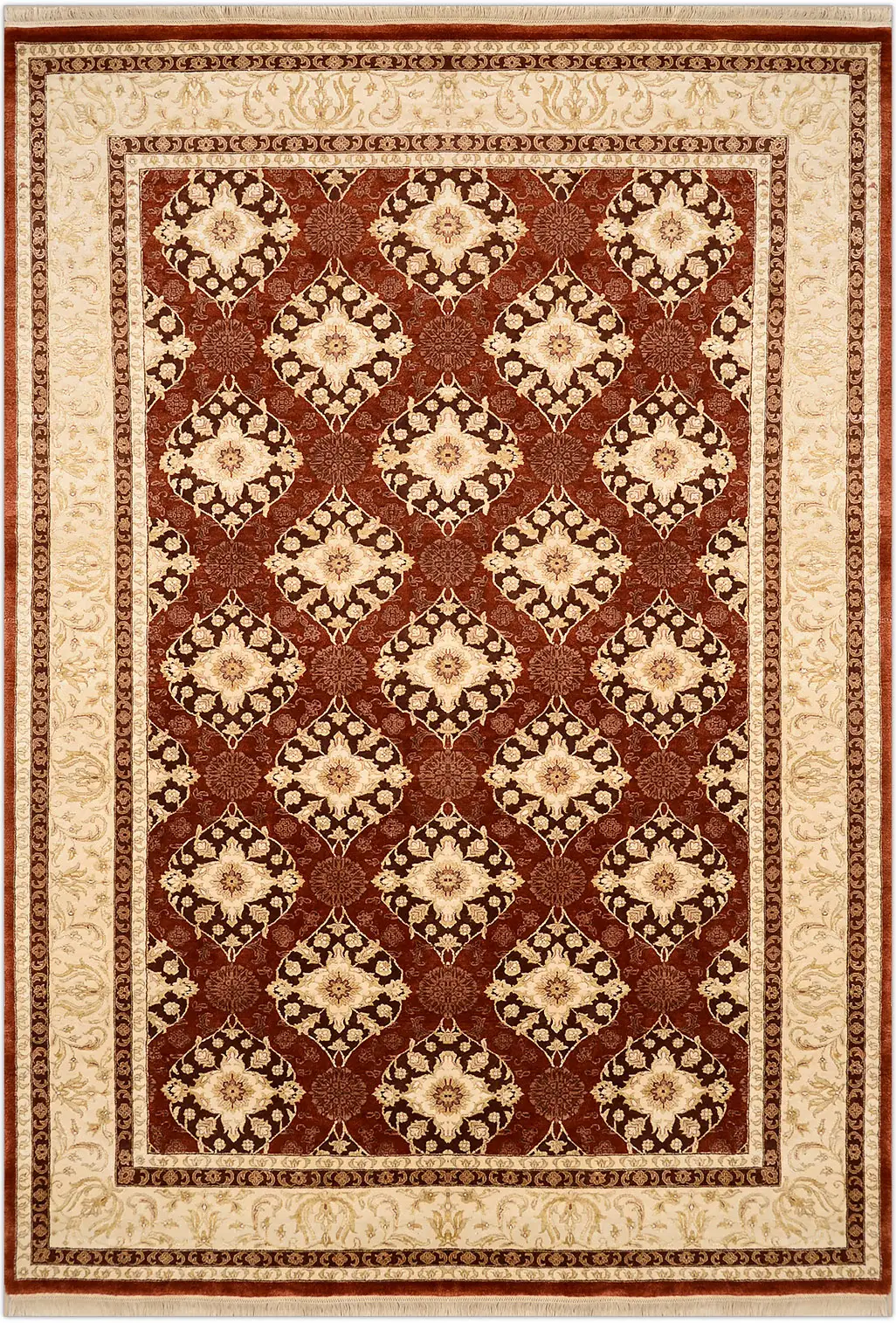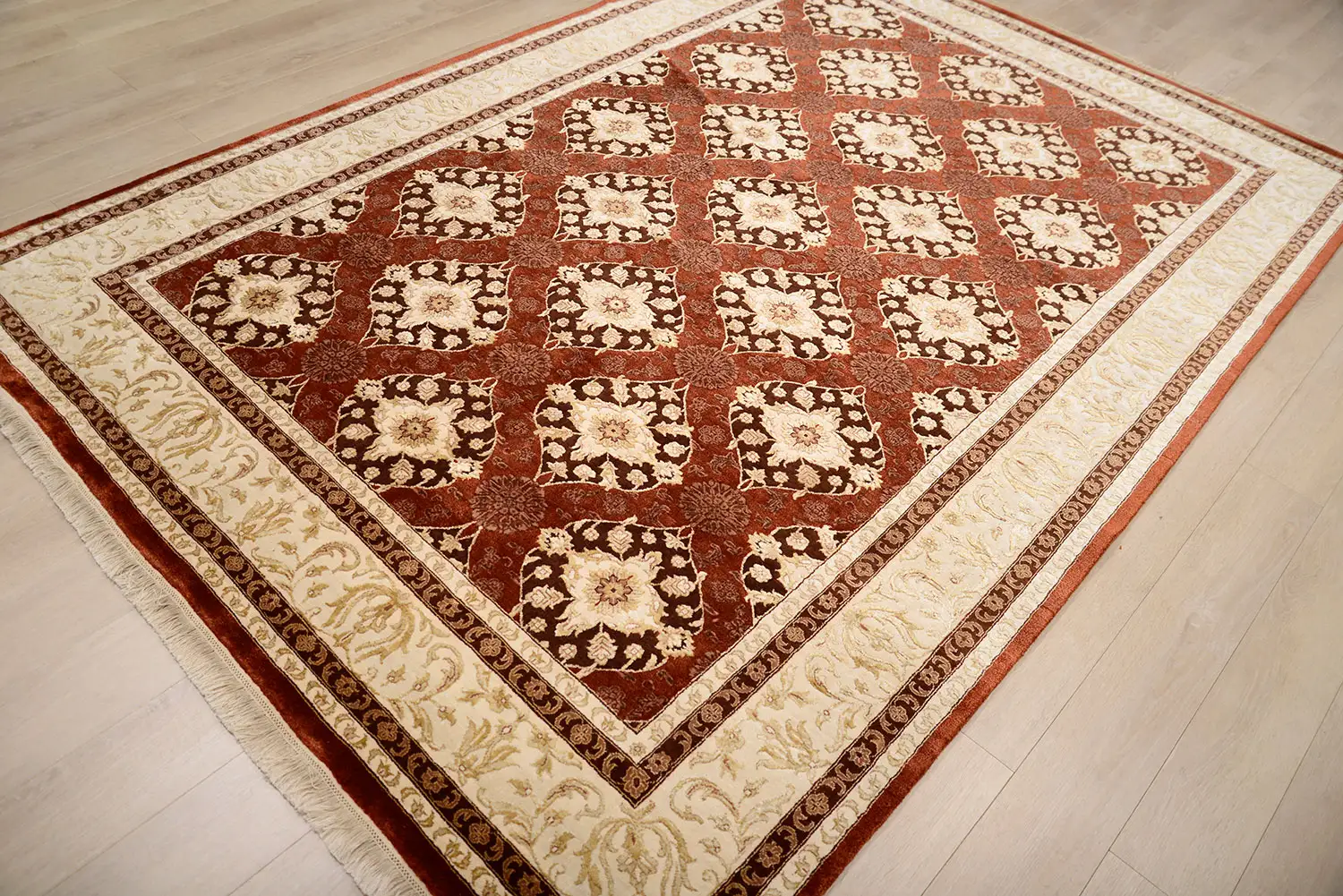 Современный Индийский ковер Damask №3526 294x198cm из шерсти и шелка в стиле неоклассика -50%